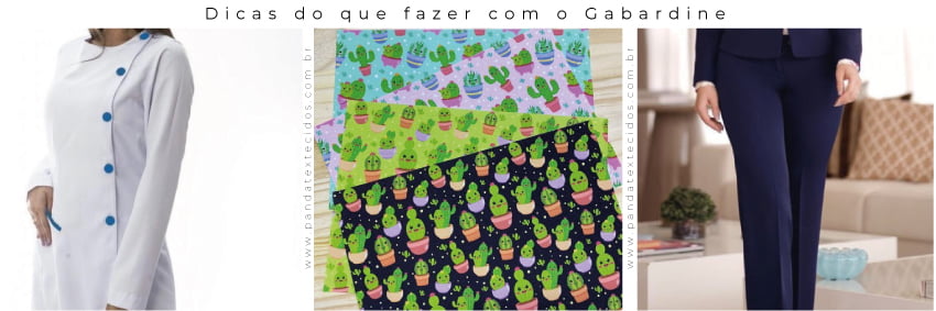 O tecido Gabardine é um tipo de microfibra composta geralmente por poliéster e viscose (essa somente poliéster), com porcentagem variável de cada fabricante. Possui aspecto sedoso e elegante, de alta durabilidade e resistente a amassados e amarelamento, podendo uma peça pronta durar muitos anos.